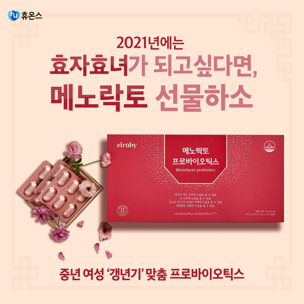 휴온스 엄기안 대표는 "코로나19로 면역력과 건강에 대한 관심이 커지면서 명절 선물로 특별한 건강기능식품을 찾는 이들을 위해 설 프로모션을 마련했다. 엘루비 메노락토 프로바이오틱스가 비대면 명절이 예상되는 올 설에 찾아뵙지는 못하지만 부모님 건강을 염려하는 자녀들의 따뜻한 마음과 정성을 전하는 좋은 선물이 되길 바란다"고 전했다.