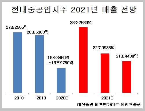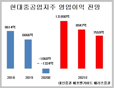 증권가에 따르면 현대중공업지주는 지난해 매출이 19조 원대로 전년에 비해 25% 이상 감소할 것으로 예상된다. 2019년 6666억 원이던 영업이익도 지난해에는 1000억 원대 적자를 낼 전망이다.
