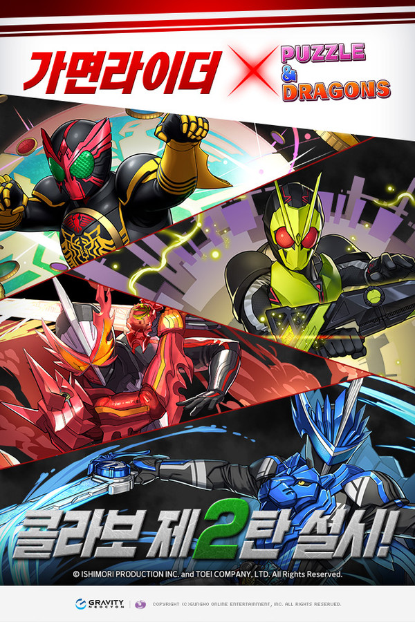이번 콜라보레이션은 오는 2월 8일 오전 9시 59분까지 진행한다. 콜라보레이션 기간 '마법석 6개! 가면라이더 콜라보 에그'를 통해 신규 캐릭터 '가면라이더 세이버', '가면라이더 블레이즈', '가면라이더 오즈'와 인기 높은 '가면라이더 제로원'을 포함한 총 18종의 콜라보 캐릭터를 획득 가능하다.
