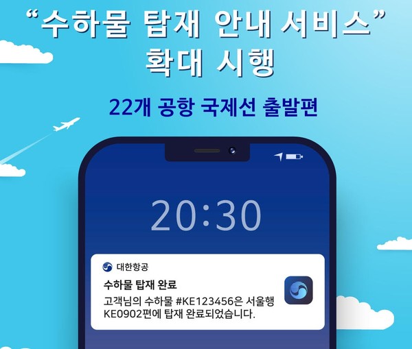 수하물 탑재 안내 서비스는 고객이 항공기 탑승 시점에 자신의 위탁 수하물이 항공기에 실렸는지 등을 스마트폰으로 알려주는 서비스다.