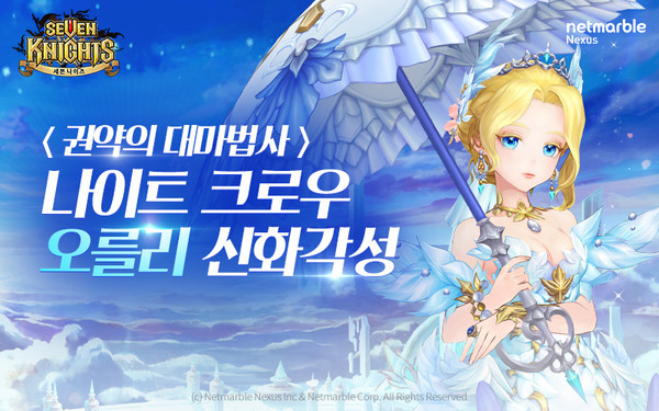나이트크로우 소속 영웅 '오를리'는 파괴의 힘을 되찾고자 지상 연합군과 함께 천상계 전장으로 향하며 신화 각성을 하게 된다. 이번 업데이트로 적 전체에게 관통 마법 피해를 입히면서 두 턴 간 침묵 및 감전 저항 확률을 감소시키는 '최후의 일갈' 스킬을 활용할 수 있게 됐다.
