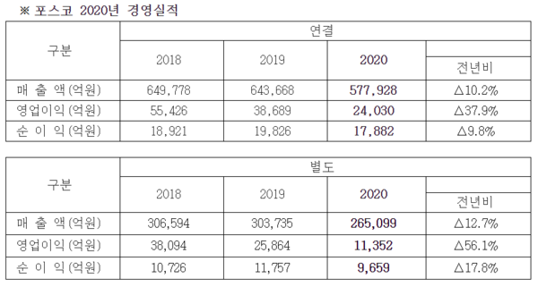 포스코는 지난해 코로나19로 인한 철강 수요산업 침체와 원료가 상승의 제품가격 반영 지연에 따른 마진 하락 등으로 유례없는 경영위기를 겪었다.