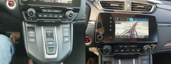 수납 공간도 충분하고 헤드업디스플레이는 버튼이 따로 있어 편하다. 스마트폰 무선 충전대도 기어 바로 밑에 두어 편하다. 투어링 트림에는 CR-V 터보에서도 인기 있던 레인 와치 버튼이 있다. 우측 방향 지시 레버를 조작하거나 버튼을 누르면 우측 사이드 미러에 설치된 카메라로 조수석 방향의 사각지대를 모니터로 확인할 수 있어 편하다.