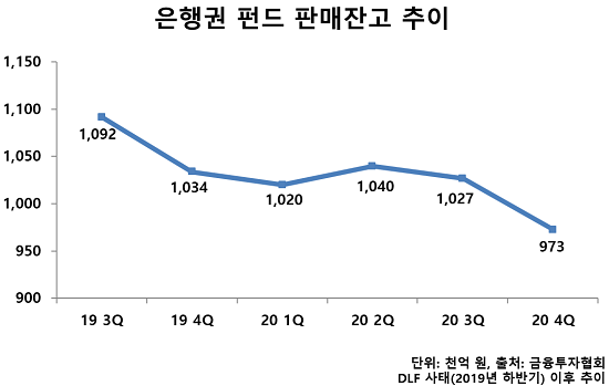 ◆ DLF 사태 이후 은행 펀드 판매고 하락세 전환...판매도 소극적