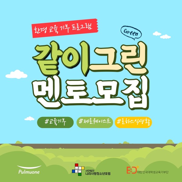 ‘같이그린(Green)’은 건강한 지구에서 지속가능한 라이프스타일을 추구하기 위해 대학생 멘토들과 고등학생 멘티들이 한 팀이 돼 교육 기부 형태로 함께 환경문제를 고민하는 해결방안을 모색, 실천하는 환경문제 프로젝트다.