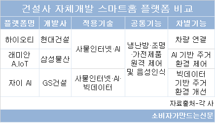 그동안 스마트홈 사업은 통신사나 IT기업, 가전업체 등과 협업이 필수였지만 최근 GS건설(대표 허창수·임병용)과 현대건설(대표 이원우), 삼성물산(대표 이영호·고정석·정금용) 등 주요 건설사들이 독자적인 스마트홈 플랫폼을 개발해내는 추세다.
