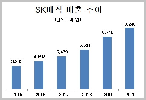 SK에 편입되기 전과 비교하면 증가율이 더욱 크다. SK매직이 과거 SK에 편입되기 전인 2015년은 전년에 비해 매출이 10.1% 증가했지만, 영업이익은 9.2% 감소했다. 2016년도 매출과 영업이익 증가율은 각각 20.2%, 8.3%로 SK 편입 후보다 상대적으로 낮다.