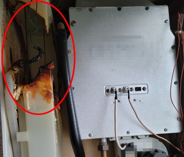 보일러실에서 물이 쏟아지는 소리가 들려 확인해보니 보일러 온수 탱크 부위가 불 타 녹아내린 상태였다. 누전 부위가 물이 있는 온수 탱크가 아닌 다른 곳이었다면 하마터면 화재로 번질 수 있는 아찔한 상황이었다고.