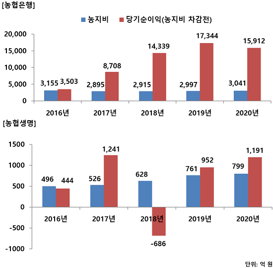 특히 금융당국이 농협금융 계열사들의 자본 건전성 강화를 이유로 수 년전부터 농지비 산정방식 제고를 요구하고 있음에도 농지비 증가세가 지속되는 상황이다.