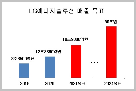 LG에너지솔루션은 2024년 매출 30조 원을 목표로 세우고 있는데, 순조롭게 달성될 경우 LG전자에 이어 LG그룹에서 매출이 두 번째로 큰 계열사가 될 것으로 점쳐진다.