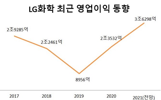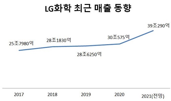 금융정보업체 에프앤가이드에 따르면 LG화학의 올해 예상 매출은 연결기준 39조290억 원, 영업이익 3조6298억 원이다. LG화학이 목표로 세운 37조3000억 원보다도 높다.