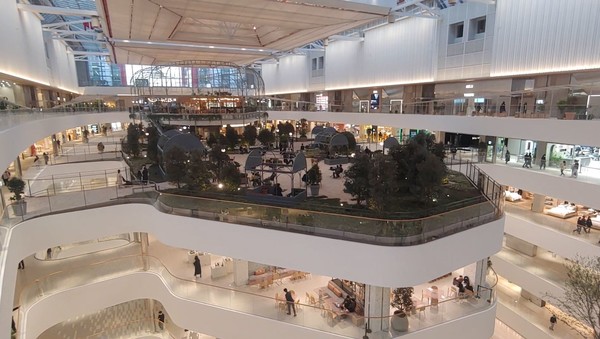 이같은 ‘알짜배기’ 땅에 올려진 ‘더 현대 서울’에서 매장이 차지하는 면적은 단 51%(4만 5527㎡) 뿐이다. 나머지 49%는 조경을 통해 고객 휴식을 위한 ‘실내 공원’이 됐다.