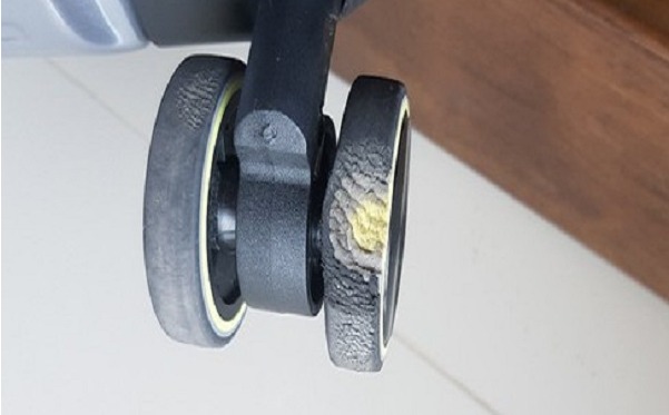 하지만 지난 2월 중순 부모님이 해외 출국지에 도착해 캐리어를 닦다 보니 바퀴 한쪽 고무가 다 닳아 있는 상태였다. 처음 사용한 데다 약 15kg 무게의 짐을 싣고 공항에서 5분가량 끌고 다닌게 전부였다고.