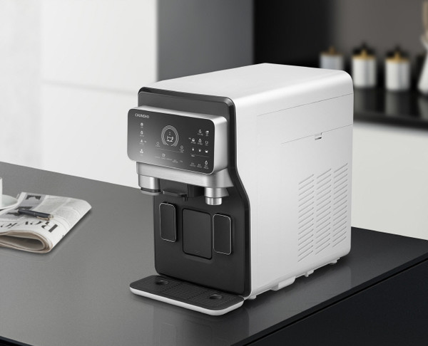 이번 신제품은 역삼투압 필터 시스템으로 깨끗한 물은 물론 캡슐커피머신 기능이 결합 됐다. 싱크대 위에 올라가는 카운터탑형 제품으로 정수 2.4L, 냉수 1.6L, 온수 0.57L, 얼음 0.52㎏의 용량을 갖췄다.