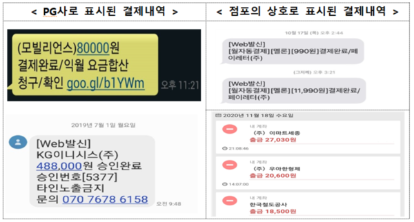 또 여러 개의 PG사를 거치는 다층 PG결제 구조인 경우에는 1차 PG사의 하위 가맹점 정보(예 : 00마트) 및 2차 PG사 본사(예 : 11번가, 인터파크 등 오픈마켓, 네이버페이 등 간편결제, 배달앱 등)까지 표시하도록 제안했다.