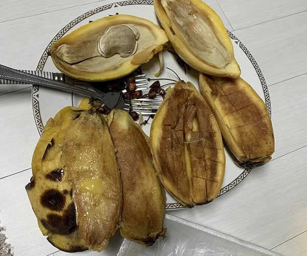 집에와 포장을 뜯어 보니 껍질이 시커멓게 멍들어 있고 과육도 썩은 상태라 입에 댈 수 없는 상태였다.