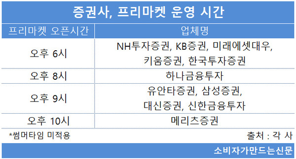 KB증권과 미래에셋대우, 키움증권, 한국투자증권은 최근 프리마켓 오픈시간을 오후 6시로 앞당겼다.