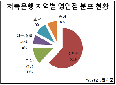 영업점 분포 현황에서도 저축은행의 수도권 집중 현상은 두드러졌다.