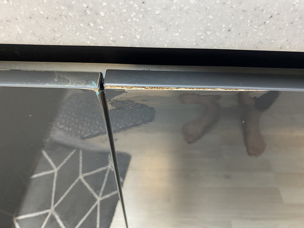 브랜드 가구업체의 싱크대를 설치한지 1년 만에 수납장의 시트지가 벌어져 소비자가 품질 문제를 지적했다.