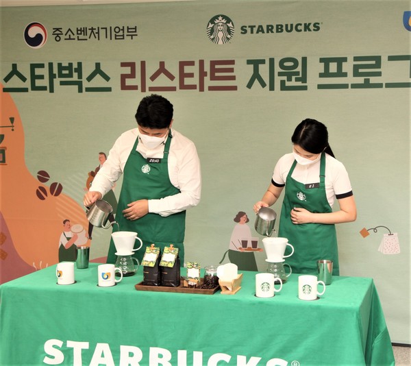 ‘리스타트 지원 프로그램’은 2020년 5월 스타벅스가 중소벤처기업부와 맺은 13호 자상한 기업 업무 협약 관련 상생 프로그램의 일환으로 스타벅스의 전문적인 바리스타 교육 및 운영 노하우 전수 등을 통해 40대 이상 재기 소상공인의 취업이나 카페 재창업을 지원하는 프로그램이다.