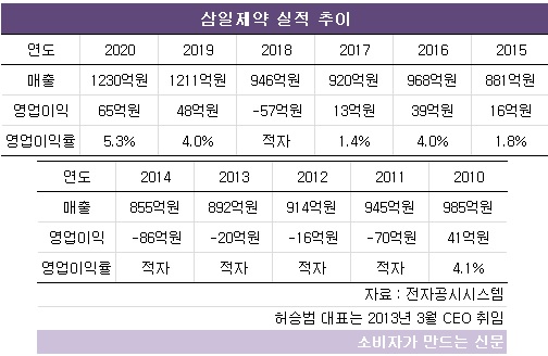 삼일제약 관계자는 “허 대표 체제에서 위장관치료제 글립타이드, 위장관운동조절제 포리부틴류, 성분영양제 리박트 등 주력 제품 매출이 성장하며 좋은 실적을 내고 있다”며 “베트남 등 해외진출을 통해 체질 개선을 추진하고 있다”고 말했다.