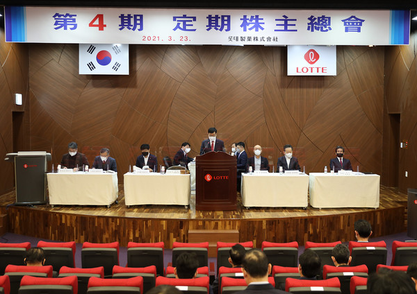 민명기 대표는 인사말을 통해 "지난 2020년은 코로나19의 확산으로 불가피한 어려움을 겪었다"면서 "하지만 롯데제과는 이러한 어려움 속에서도 수익성 중심 경영과 다양한 도전을 통해 경영실적을 개선했다. 온라인 중심의 유통환경 변화에 적극 대응해 자사몰인 롯데스위트몰과 업계 최초의 과자 구독 서비스 월간 과자, 이커머스 전용 상품 간식자판기 등을 론칭하해 온라인 매출을 대폭 신장시켰다"고 말했다.
