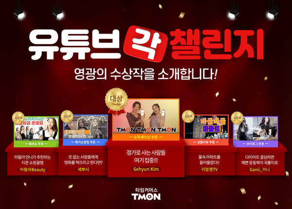 티몬은 특가 쇼핑을 위한 꿀팁과 구매후기, 서비스 특장점 등을 보다 많은 고객들에게 쉽고 유쾌하게 전달하기 위해 지난달 22일부터 유튜브 공모전을 진행해왔다. 지난 21일까지 약 한달 간 ▲특가쇼핑팁 ▲슈퍼세이브 ▲패션쇼 ▲상품리뷰 ▲브이로그 총 5개 부문에 걸친 작품을 공모했고, 심사로 총 15편의 본선진출작을 뽑아 100% 고객 투표로 대상을 선정했다.