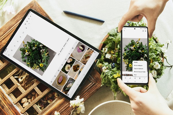 스마트폰으로 촬영한 사진이나 작성한 메모를 복사한 후 태블릿에 바로 붙여넣기가 가능하다. '키보드 무선 공유' 기능을 이용하면 '갤럭시 탭 S7·S7+'의 키보드 북커버를 스마트폰과 바로 연결해 사용할 수 있다.