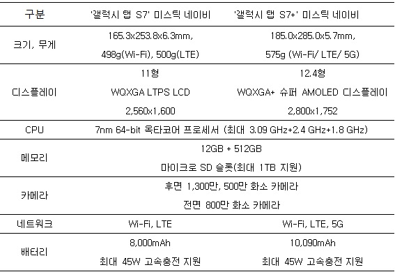 삼성전자 관계자는 "'갤럭시 탭 S7·S7+' 미스틱 네이비 모델은 태블릿 활용성이 점점 다양해지는 트랜드를 반영해 더욱 만족스러운 사용 경험을 제공하고자 색상과 사양, 사용성 모두 업그레이드했다"고 말했다.