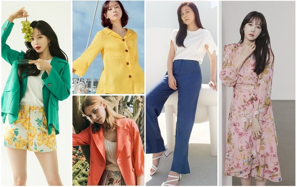 배우 한예슬을 모델로 트렌디한 디자인으로 소비자에게 꾸준히 사랑받고 있는 ‘더엣지(The AtG)’는 올여름 베이직하지만 노랑, 파랑, 보라 등 화사한 색감의 패션 상품을 다양하게 출시하며 소비자 공략에 나선다. 색상뿐 아니라 셔링, 레이스, 퍼프 소매 등의 디자인 변화를 통해 여성스러운 분위기를 더할 수 있도록 했다. ‘린넨 100 재킷’은 기존의 재킷에서는 보기 드문 트로피칼 그린, 달리아 핑크 등의 화려한 컬러감을 갖춘 린넨 재킷으로 캐주얼과 정장 등 다양한 스타일로 연출할 수 있다. 이외에도 ‘벌룬 소매 블루밍 티블라우스’, ‘와이드 팬츠’, ‘반팔 카라 니트’ 등 디자인과 색상의 차별화를 둔 상품을 선보인다.