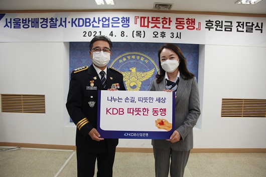 8일 서울 방배경찰서에서 열린 후원금 전달식에는 박선경 산업은행 경영관리부문장과 김상문 방배경찰서장이 참석해 사고 후유증으로 직장에서 퇴사하고 기초생활수급자가 된 피해자를 위로하고 양 기관이 범죄피해자들의 자활·자립을 위해 더욱 협력하기로 약속했다.
