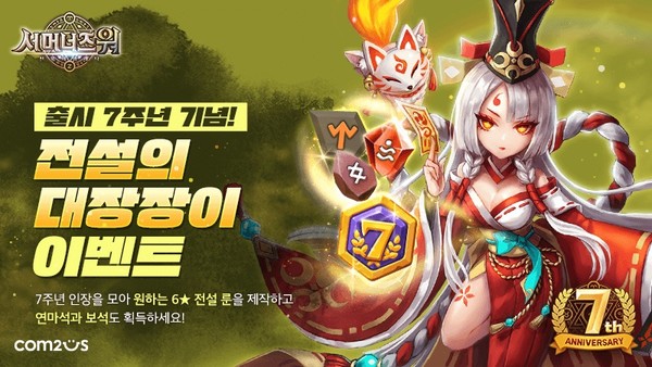 7주년 기념 소환서는 이번 출시 7주년을 맞아 특별 제작됐다. 유저들이 지정한 몬스터를 확정해 소환할 수 있다. 서머너즈 워 태생 3~5성 몬스터 중 등급별로 7마리씩 총 21마리 몬스터를 선택하고 7주년 기념 소환서를 통해 한 마리를 최종 획득할 수 있다. 이벤트를 통해 최대 100마리까지 소환 가능하다.