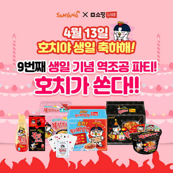 이번 방송에서는 '호치 대장이 쏘는 역조공 라방 파티'를 콘셉트로 다양한 불닭브랜드 제품과 대표 캐릭터인 호치 굿즈를 판매한다.