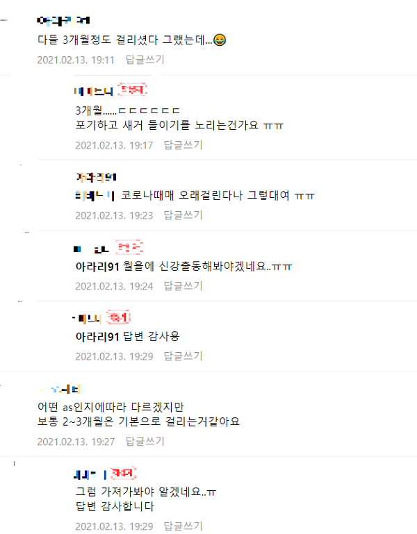 본사에 재차 문의한 끝에 지난 3월 말에야 “부품이 국내에 없어서 해외에 발주해놓은 상태다. AS가 언제 완료될지는 확인 불가능하다”는 답을 듣게 됐다.