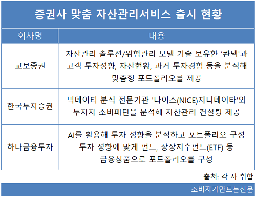 19일 관련 업계에 따르면 교보증권과 한국투자증권, 하나금융투자는 최근 새로운 자산관리 서비스를 잇따라 선보이고 있다.