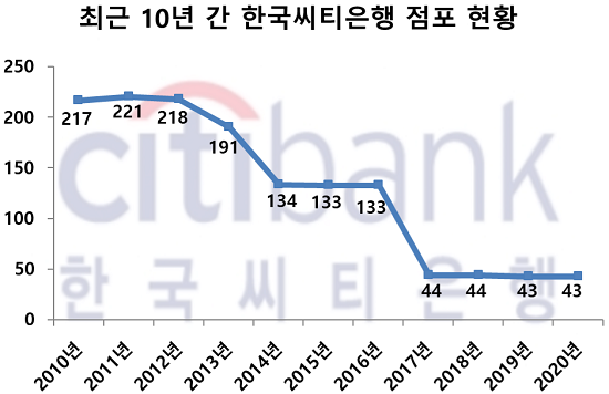 한국씨티은행은 수 년전부터 소매금융부문 몸집을 지속적으로 줄여왔다. 대고객 접점인 오프라인 점포는 과거 2000년대 초중반까지는 200여 곳에 달했으나 지난 2013년 구조조정을 거쳐 130여 곳으로 줄였다.