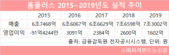 22일 홈플러스에 따르면 이 회사의 2019년 매출은 전년보다 4.7% 줄어 7조3002억 원, 영업이익은 38.3% 감소해 1602억 원이었다. 특히 순손실이 전년보다 301%가량 늘어 5322억 원을 기록했다. 지난해 실적은 아직 공시되지 않았지만 코로나19 여파로 실적 개선이 쉽지 않을 전망이다.
