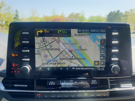 아쉬운 부분도 있다. 디스플레이가 차 크기에 비해 큰 편은 아니다. 굳이 터치와 버튼 기어를 나눌 필요가 있을까 싶기도 하다. 네비게이션은 국산 아슬란이 탑재돼있는데 주행 중 위치 변경이 안 된다고 한다. 장점이 될 수도, 단점이 될 수도 있는 부분이다.