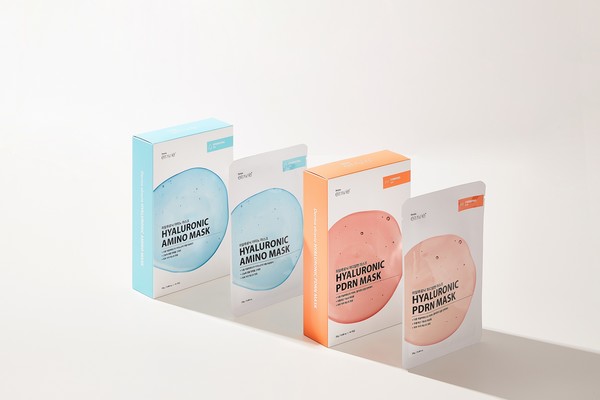 더마 엘라비에 히알루로닉 마스크는 연어 DNA 성분이 들어간 '피디알엔 마스크'와 17가지 아미노산 콤플렉스가 들어간 '아미노 마스크' 2종이다.