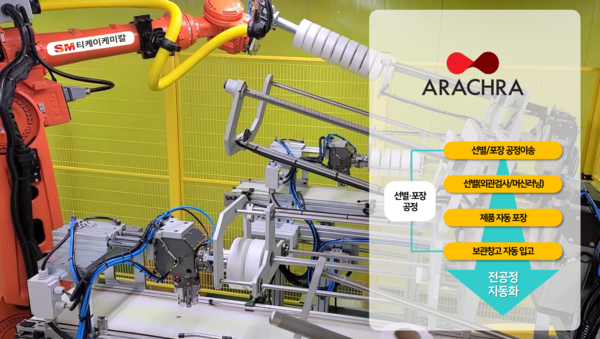 이날 공개한 ‘선별·포장’ 공정 이송용 로봇의 적용으로 제품의 공정 이송부터 선별(외관검사), 포장, 보관창고 입고 등 전 공정이 자동화됐다. 특히 선별공정 자동화는 ‘인식기능’을 탑재해 불량제품 반출을 사전에 방지할 수 있도록 설계됐다.