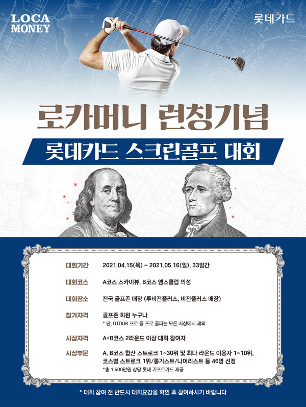 이에 대해 롯데카드 관계자는 “롯데카드의 새로운 금융 브랜드 ‘LOCA MONEY’를 알리고, ‘새로운 도전을 즐기는 고객을 위한 선 넘은 금융’이라는 LOCA MONEY의 지향점을 전달하고자 이번 골프 대회를 개최했다”며 “다양한 시상이 마련된 만큼 많은 분들의 관심과 도전을 기대한다”고 말했다.