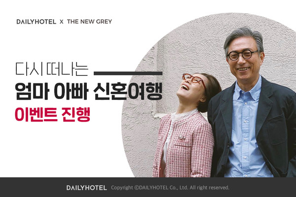 데일리호텔 관계자는 "가정의 달을 맞아 부모님에게 특별한 추억을 선물할 수 있는 리마인드 신혼여행 이벤트를 마련했다"며 "고객들에게 잊지 못할 하루를 선사하기 위해 노력하겠다"고 밝혔다.