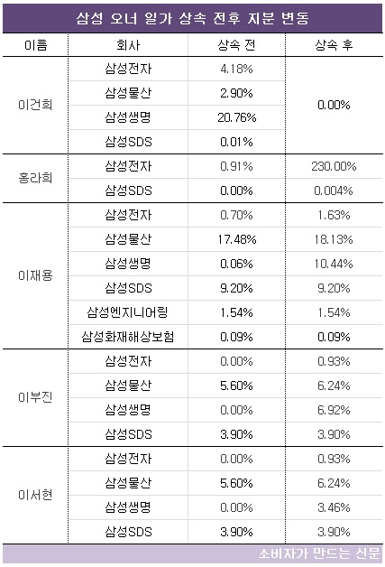 또 두 사람은 상속비율에 따라 삼성전자 지분 0.93%를 받게 되면서 4조5000억 원 이상 주식가치가 상승했다. 상속 후 주식가치는 250% 이상 증가했다.