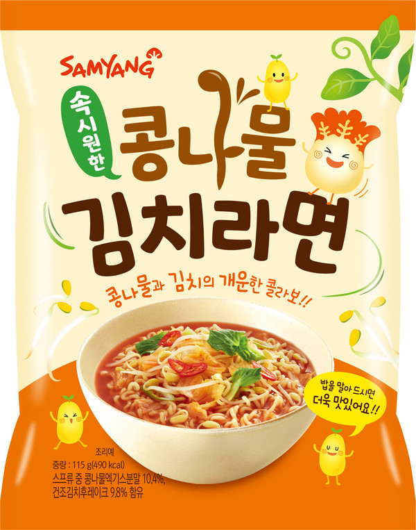 삼양식품은 "기존 김치라면들이 김치찌개의 진한 맛을 낸 것과 달리 콩나물김치라면은 깔끔한 김칫국 스타일로 차별화해 시원하고 칼칼한 국물이 특징"이라면서 "스프에 콩나물엑기스분말을 넣어 개운한 국물맛을 완성했고 각종 채소 후레이크로 씹는맛과 감칠맛을 살렸다"고 설명했다.
