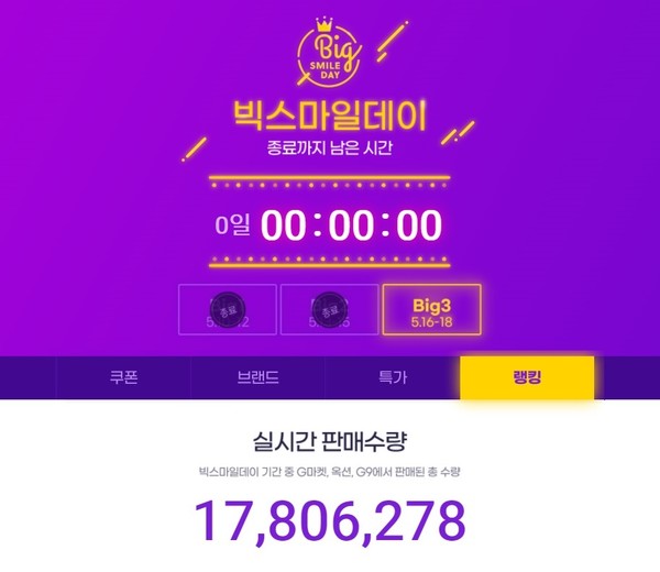 특히 이번 빅스마일데이는 고가의 프리미엄 제품이 불티나게 팔리면서, 지난해 5월 행사 대비 거래액이 17% 급증했다. 행사 규모에 맞게 일 평균 방문자 수도 22% 늘었다.