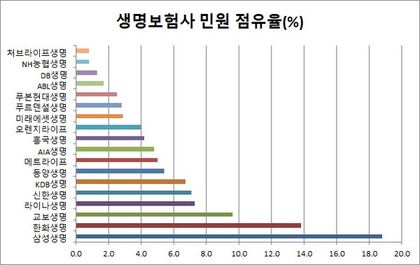 ABL생명 역시 지난해 신계약 건수가 100만 건을 넘으며 5위를 기록했지만 민원 점유율은 1.7%에 불과해 양호했다.
