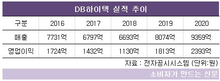 DB하이텍은 반도체 사업 진출 13년 만인 2014년에야 영업이익을 내기 시작했고, 2015년부터 2019년까지 5년 동안은 줄곧 1000억 원대의 영업이익을 기록했다.