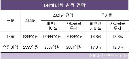 증권가에 따르면 DB하이텍은 올해 1조650억 원 가량의 매출을 기록할 것으로 전망된다. DB하이텍은 연간 매출이 1조 원 이상을 기록한 적이 한 번도 없다.