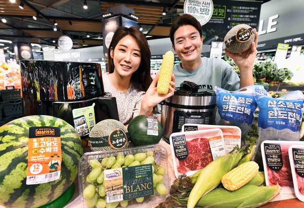 아울러 행사카드 결제 시 수박 선별의 달인이 선별한 수박(7kg 이상/8kg이상, 국내산)을 각각 1만4990원, 1만5990원에, 초고당도/100% 당도선별/까망꿀/미니수박(국내산)은 각각 3000원 할인가에 판다. 또한 고당도 노을멜론(1.3kg 이상, 국내산) 6990원, 프리미엄 블랑청포도(900g, 팩, 칠레산) 9990원 등 카드 행사 품목을 다양하게 마련했다.