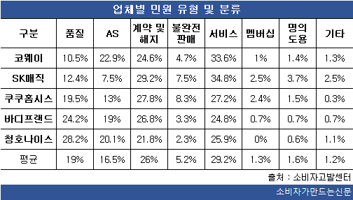지난해 렌탈업계에서 가장 많이 제기된 소비자 불만은 서비스 관련 문제로 전체의 29.2%를 차지했다.